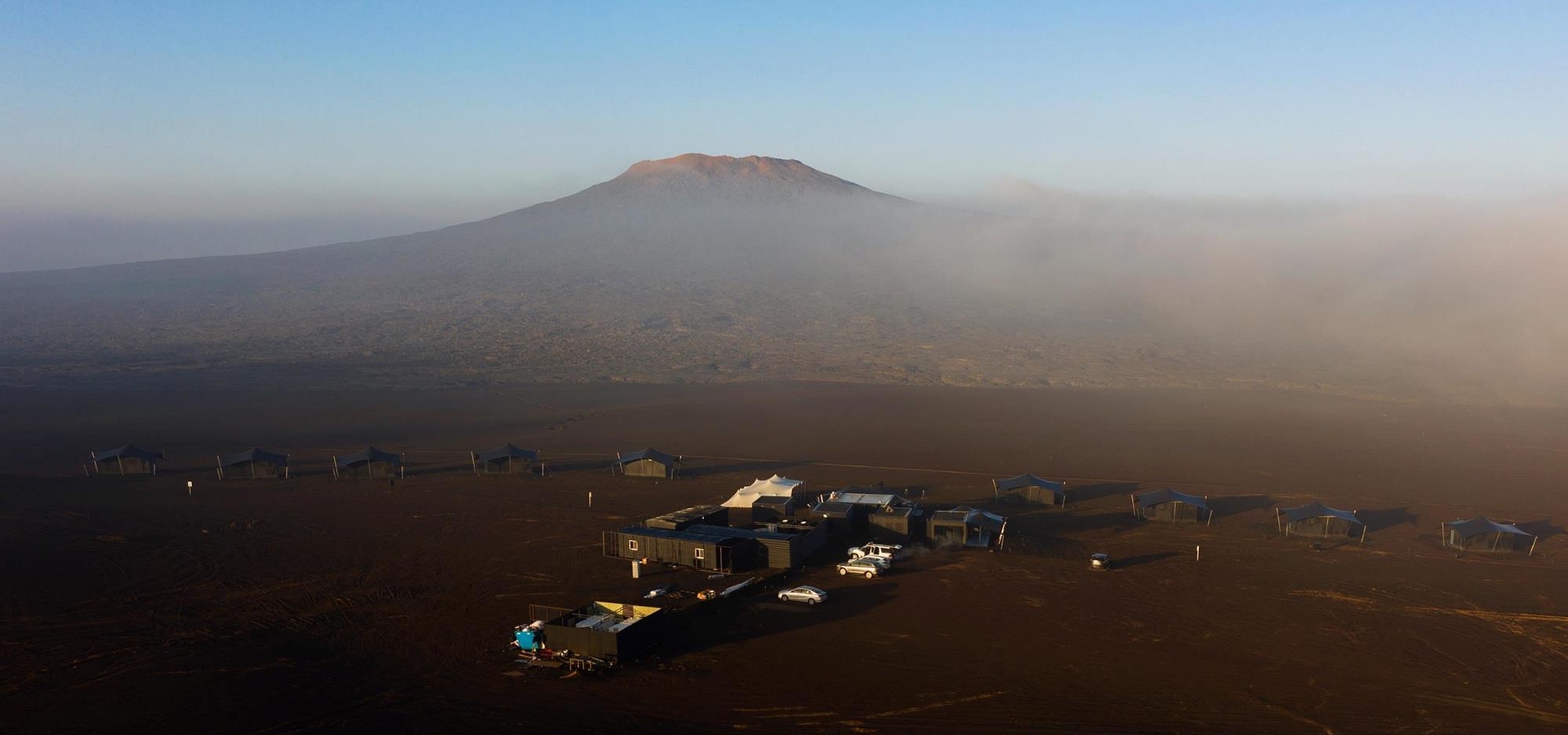 جرى تصميم وحدات المخيم، الذي يتمايز بقربه من جبل القِدر البركاني الذي صُنف مؤخرًا من بين أفضل مائة موقع جيولوجي من الاتحاد الدولي للعلوم الجيولوجية "IUGS" ومنظمة الأمم المتحدة للتربية والعلم والثقافة، على نحو يتناغم مع التضاريس البركانية المحيطة دون المساس بالطبيعة، وذلك لكي يتيح للضيوف الاستمتاع بما يوفره المخيم من أنشطة وبرامج منها جولات استكشافية، والجلوس على ضوء الحطب، والشواء، وممارسة رياضة المشي وتسلق الجبال البركانية مع توفير كل متطلبات الأمن والسلامة.