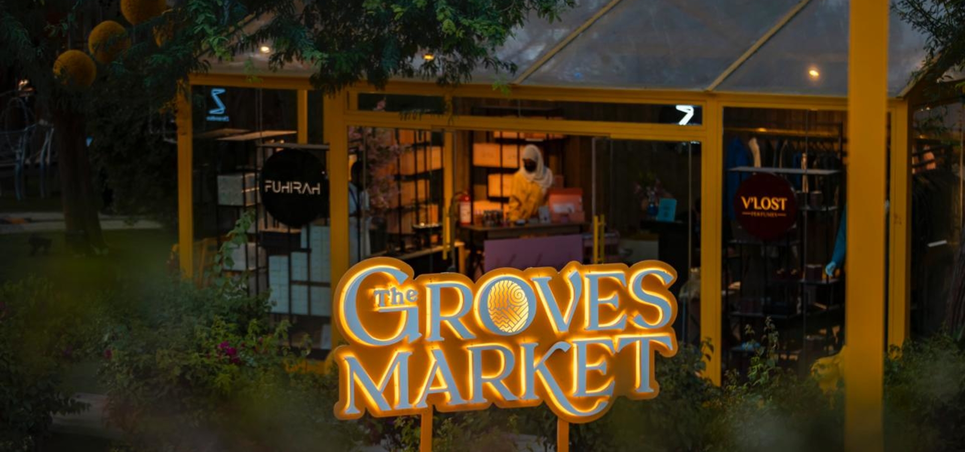 ويتميز ركن ذا جروفز ماركت، بأشجاره الممطرة التي تحتل مكانًا مميزًا محاطًا بجلسات حديثة ضمن أجواء خيالية تمنح متعة الإحساس بأجواء الشتاء والغابات المطيرة، في طقس معتدل هادئ، يجعل من اجتماع الأقارب والأصدقاء لحظات مليئة بالأُنس والسعادة.