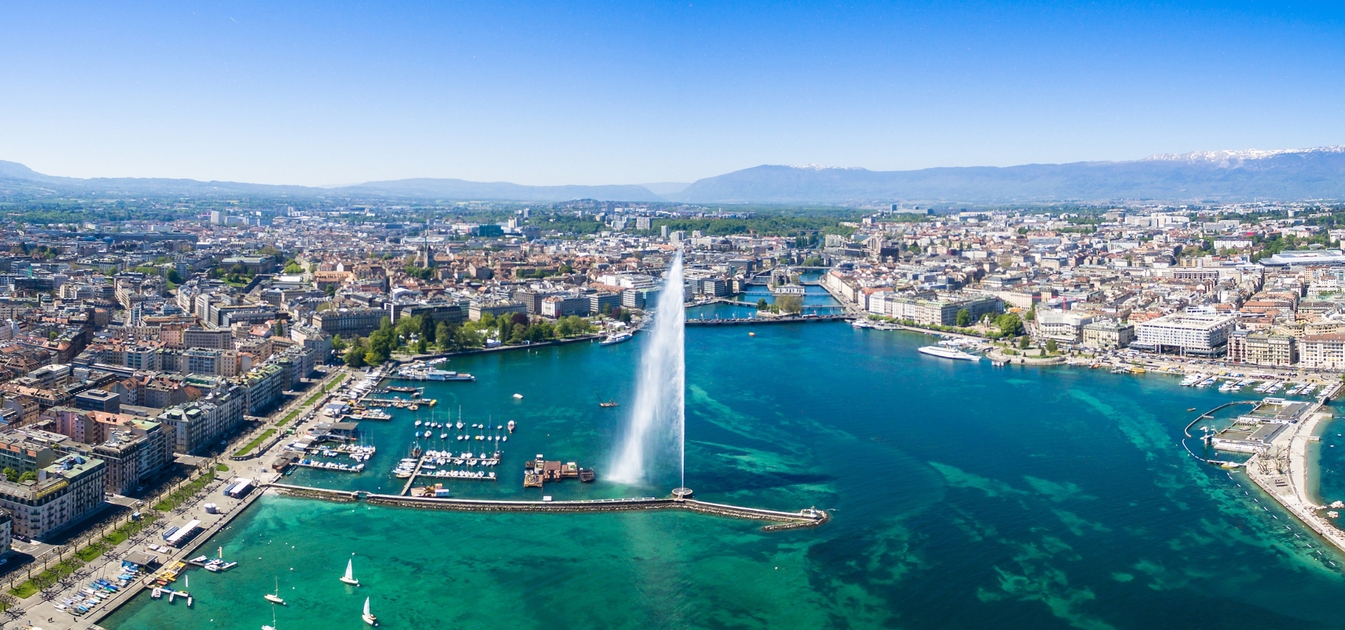 تقع مدينة جنيف التي تصنف ثاني أكبر مدن سويسرا على الطرف الجنوبي الغربي من البلاد، قرب الحدود الفرنسية على نهر الرون، وللمدينة أهمية دولية كبرى كونها مقرًا للكثير من منظمات الدولية الكبرى.