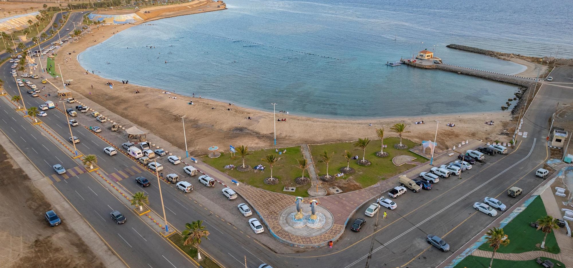 يتمايز الشاطئ، الذي تزينه أشجار النخيل الوارفة، بنظافته وإطلالته المميزة على خليج نصف دائرة تقل فيه الأمواج، وجرى تجهيزه بمقاعد للجلوس، ومساحات لألعاب الأطفال، وكل ما يحتاجه المصطافون من المرافق العامة، وأماكن الشواء، ما يسمح لهم بقضاء يوم جميل تحت أشعة الشمس.